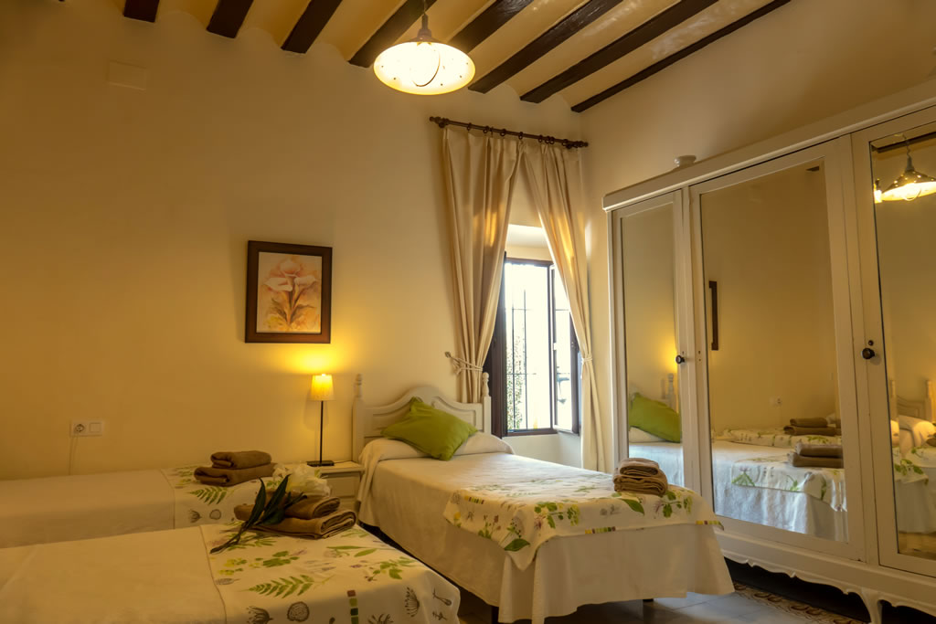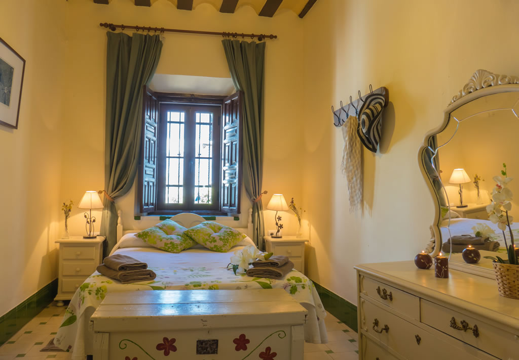 En estas dependencias, situadas en el segundo piso, residió hasta hace poco Doña Carmen, quien le da nombre a este coqueto, espacioso, acogedor y espléndido apartamento, claro ejemplo de la arquitectura serrana más acomodada, en el que disfrutarás de la mejor azulejería sevillana del siglo XIX, junto a la amplitud de su salón y sus dormitorios, desde donde no faltan hermosas perspectivas tanto al patio interior como a la calle. En fin, un verdadero capricho a tu alcance.