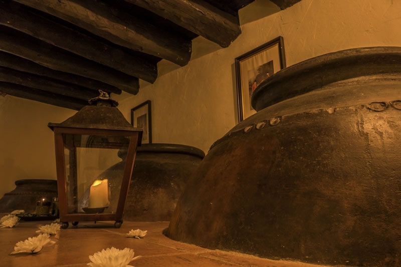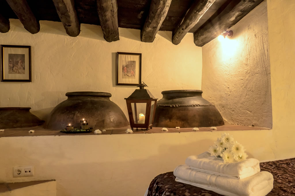 Anexa al alojamiento principal, la bodega era tradicionalmente el lugar donde, gracias a su constante temperatura, se conservaban los llamados avíos de la casa. Bajo sus hermosos arcos de ladrillo autóctono, tinajas para guardar el vino o el aceite, arcones donde reposaban las legumbres, saladeros para el tocino y las chacinas y banastas de frutas y hortalizas del tiempo, venían a conferir a estas dependencias un sabor y una atmósfera inconfundible. Gracias a una restauración tan sensible como eficaz, nada te costará encontrar algunos de estos elementos, datados en el siglo XVIII, que sin duda confieren a la casa un carácter propio e inolvidable.